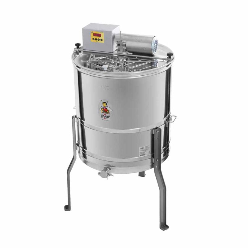 8‑Waben Selbstwendehonigschleuder mit Motorantrieb 110W/230V, vollautomatischer Steuerung und Sicherheitsschalter, welcher den Motor bei Deckelöffnung automatisch abschaltet. Die Wabentaschen in der Honigschleuder sind doppelt, zwischen ihnen befindet sich ein Blech, über welches der Honig abfließt. Modernste Technik ermöglicht uns eine innovative Ausarbeitung des Honigschleuderbodens. Der Boden des Kessels ist nahtlos geschweißt und Richtung Auslauf geneigt. Der rostfreie Quetschhahn ist am tiefst möglichen Punkt angeschweißt, damit der gesamte Honig aus der Honigschleuder abfließen kann. Alle Teile der Honigschleuder, die mit dem Honig in Berührung kommen, bestehen aus lebensmittelzugelassenen Materialien. Der Deckel ist aus durchsichtigem Acrylglas. Eine besondere Konstruktion der Standfüße gewährt der Honigschleuder eine stabile Standsicherheit.