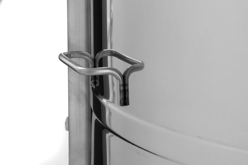 Innovative Selbstwende-Honigschleuder mit Doppeltaschen – entwickelt, um viele niedrige Waben auf kleinem Kesseldurchmesser effizient zu schleudern. Die 8-Waben Selbstwendeschleuder mit Motorantrieb (110 W / 230 V) verfügt über eine vollautomatische Steuerung und einen Sicherheitsschalter, der den Motor beim Öffnen des Deckels sofort abschaltet. Die doppelseitigen Wabentaschen sind durch ein Blech getrennt, über das der Honig abfließt. Modernste Technik und ein nahtlos geschweißter, zum Auslauf geneigter Kesselboden ermöglichen einen vollständigen Honigabfluss. Der rostfreie Quetschhahn ist am tiefstmöglichen Punkt angeschweißt, damit der gesamte Honig entnommen werden kann. Alle honigberührenden Teile bestehen aus lebensmittelzugelassenen Materialien. Der Deckel besteht aus durchsichtigem Acrylglas, und die speziell konstruierten Standfüße gewährleisten stabile Standsicherheit.