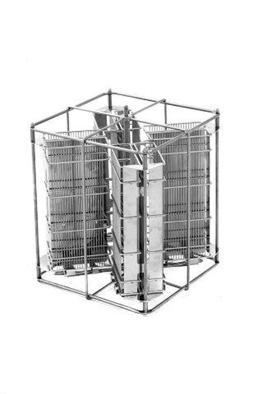 Die Wabentaschen werden aus aufrechten Gitterstäben angemessener Dichte gefertigt, sodass die Rähmchen beim Schleudern nicht beschädigt werden. Durch einen speziellen Mechanismus verbunden, verhindern die Wabentaschen ein Stauen des Honigs, sodass die Rähmchen nach dem Schleudern trocken bleiben.